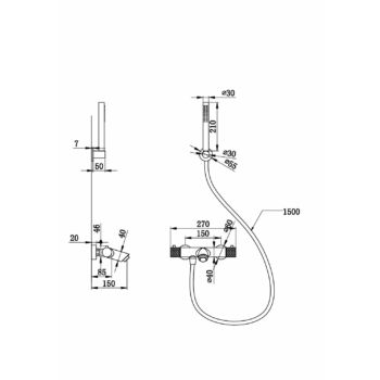 ROY PRO termosztatikus fali, kádtöltő csaptelep szálcsiszolt arany, beépíthető