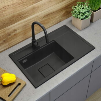 Gamma Quadro 8151 jobbos gránit mosogató, szifonnal, fekete, beépíthető