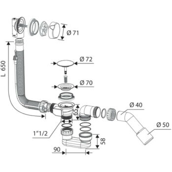 Lavre szifoncsomag, fürdőkádhoz, automata, króm