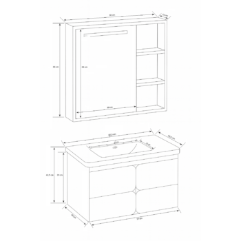 Malmo fürdőszobai szett 60x50 cm szürke, beépíthető