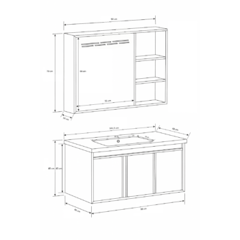Toscana fürdőszobai szett 100x47 cm világos barna, beépíthető