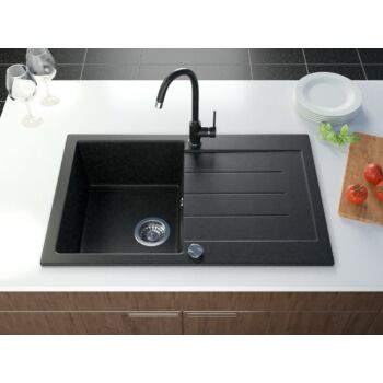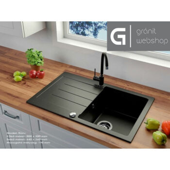 Roxy gránit mosogató automata dugóemelő, szifonnal, fekete-szemcsés, beépíthető