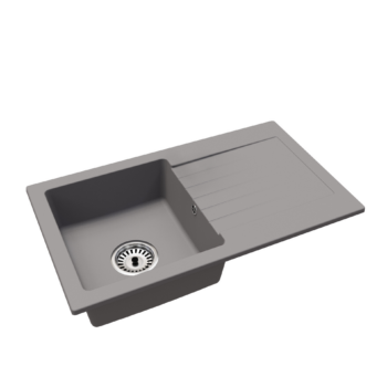 Leon2 gránit mosogató automata szűrőkosaras leeresztővel szifonnal szürke, beépíthető