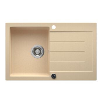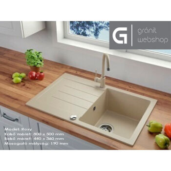 Roxy egymedencés gránit mosogató csepegtető tálcával, automata dugóemelő, szifonnal, bézs, beépíthető