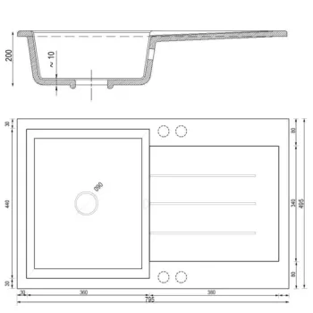 Roxy gránit mosogató automata dugóemelő, szifonnal, szürke, beépíthető