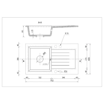 Leon2 mosogató szett 2 féle választható csapteleppel (Beta, Steel) szifonnal fekete-szemcsés színben, beépíthető