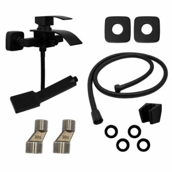 Elva kádtöltő csaptelep vízesés alakú vízsugárral fekete, beépíthető