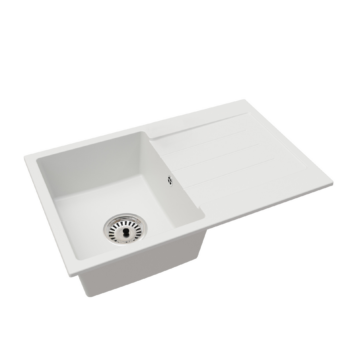 Roxy gránit mosogató FALI CSAPHOZ szifonnal, fehér, beépíthető