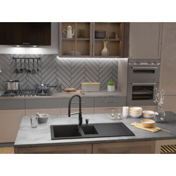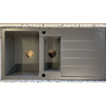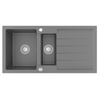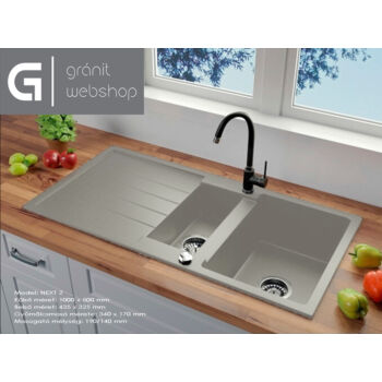 NEXT2 másfél medencés gránit mosogató automata dugóemelő, szifonnal, szürke, beépíthető