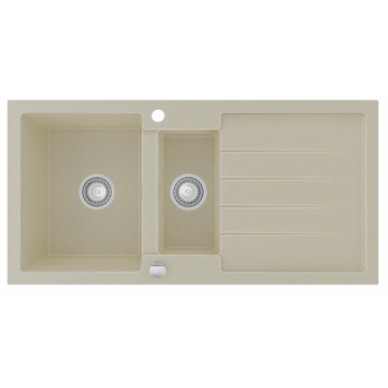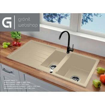 NEXT2 másfél medencés gránit mosogató automata dugóemelő, szifonnal, bézs-szemcsés, beépíthető