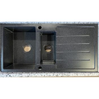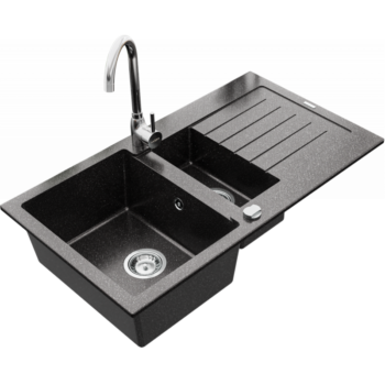 NEXT2 másfél medencés mosogató szett 2 féle választható csapteleppel (Beta, Steel) automata szűrőkosaras leeresztővel, szifonnal fekete-szemcsés színben, beépíthető