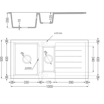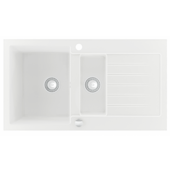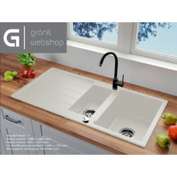 NEXT2 másfél medencés gránit mosogató automata dugóemelő, szifonnal, fehér, beépíthető