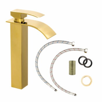 Elva magasított mosdó csaptelep vízesés alakú vízsugárral arany, beépíthető