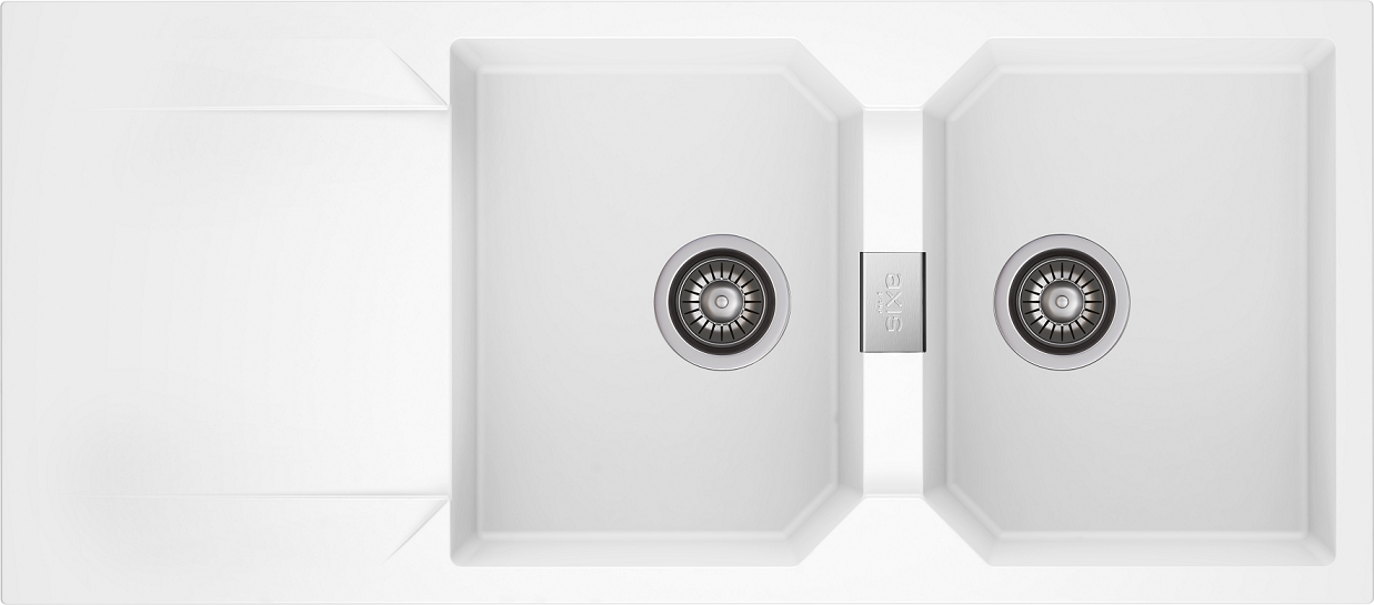 KRONOS 200 kétmedencés csepegtetőtálcás gránit mosogató automata dugóemelő, szifonnal, fehér, beépíthetőParaméterek