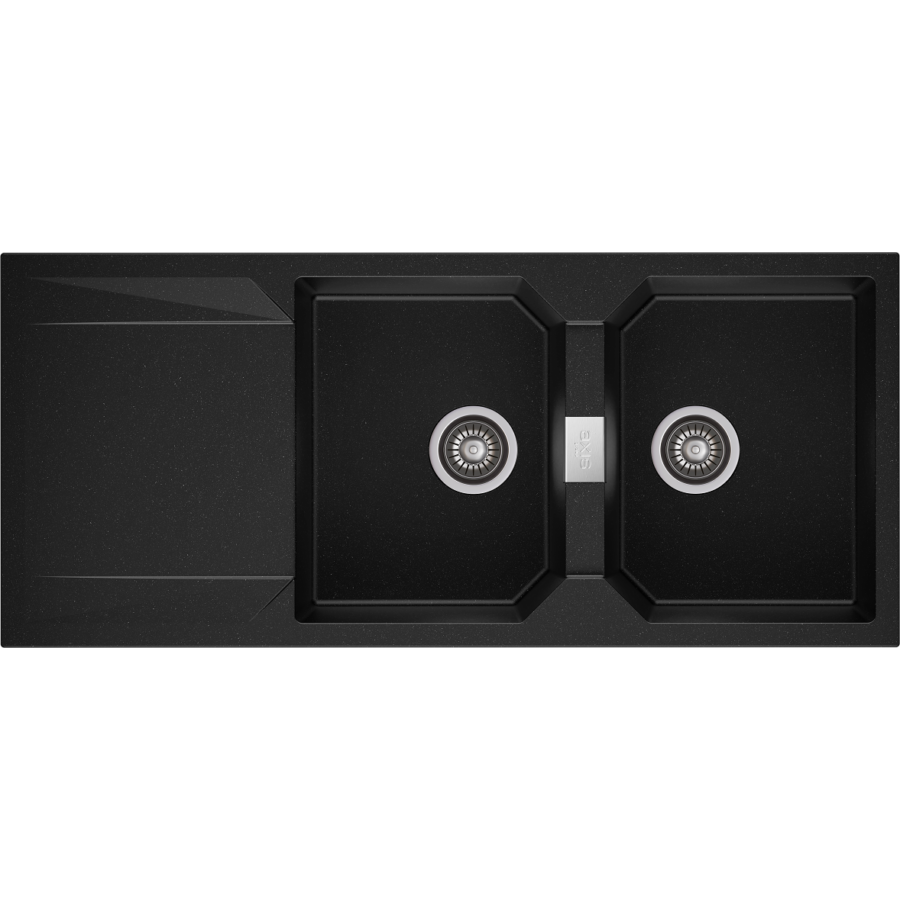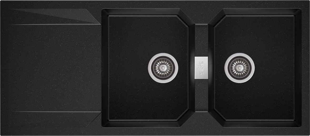 KRONOS 200 kétmedencés csepegtetőtálcás kivitelben, extra mély medencével, fekete-szemcsés, fekete, bézs, fehér és szürke színekben. Jobbos és balos kivitelben is használható. A KRONOS 200 kétmedencés csepptálcás min. 80 cm széles szekrénybe építhető be.