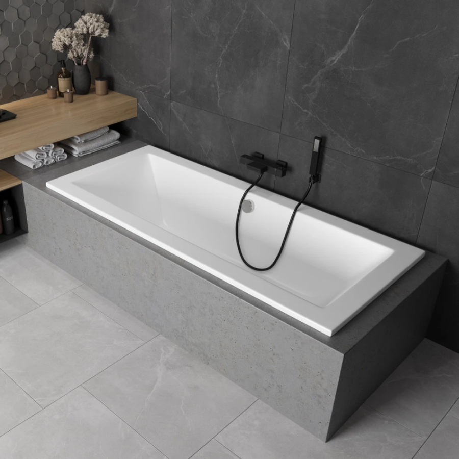 Az Kwadrat fürdőkád a standard beépíthető kád kiváló választás azok számára, akik értékelik a funkcionalitást és az esztétikát. A beépítés lehetőségének köszönhetően bármilyen kialakításba illeszkedik, modern megjelenést biztosítva.