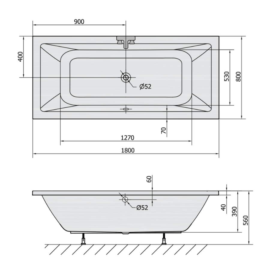 Kwadrat-180 fürdőkád, beépíthető