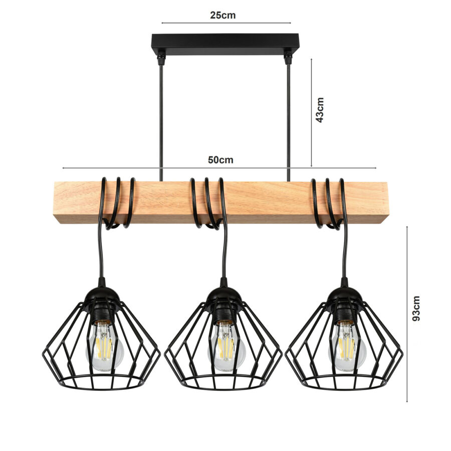 LEDLUX LX-1368 függesztett mennyezeti lámpa,3xE27, feketeParaméterek