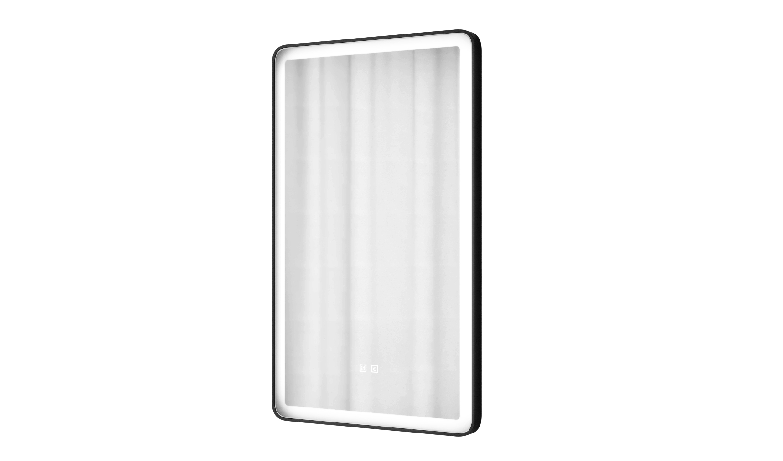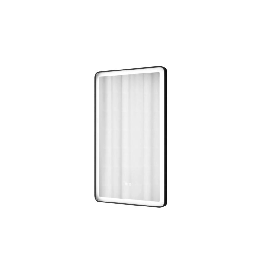Lustro kerekített téglalap alakú fürdőszobai led tükör, energiatakarékos, fekete, 60x80 cm