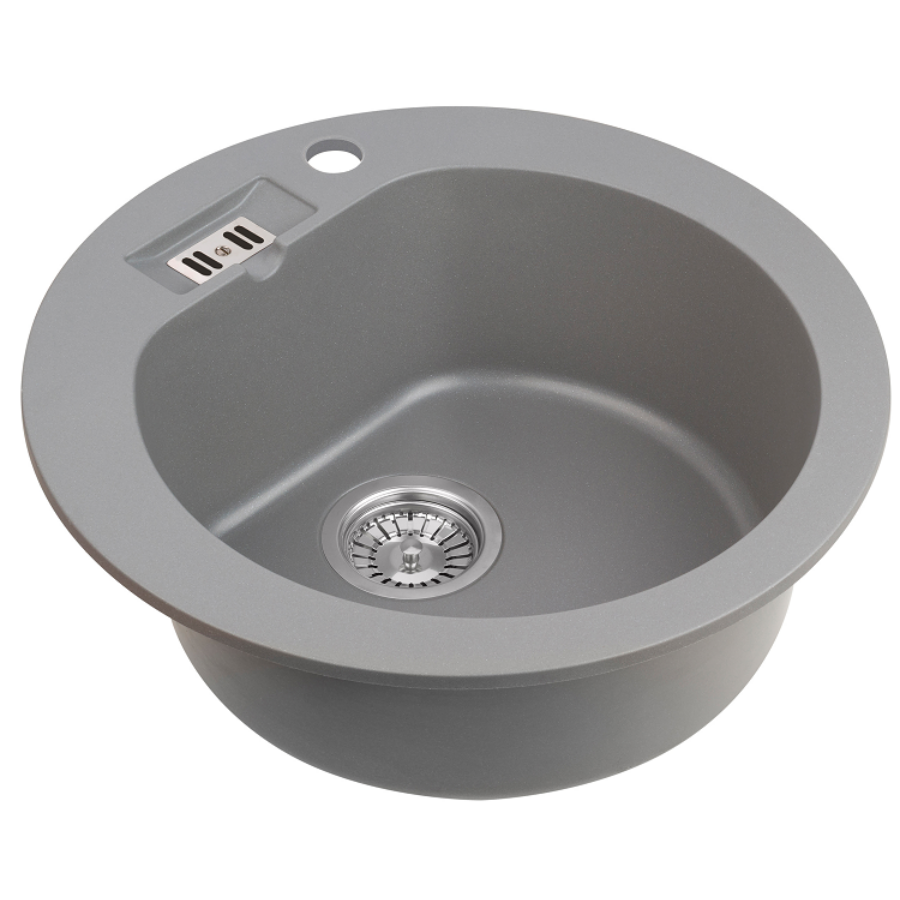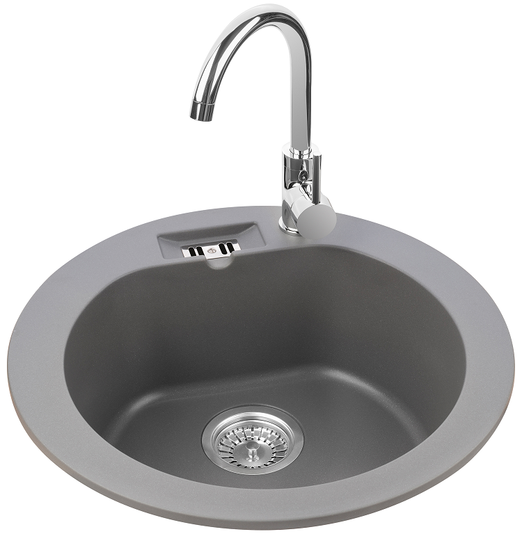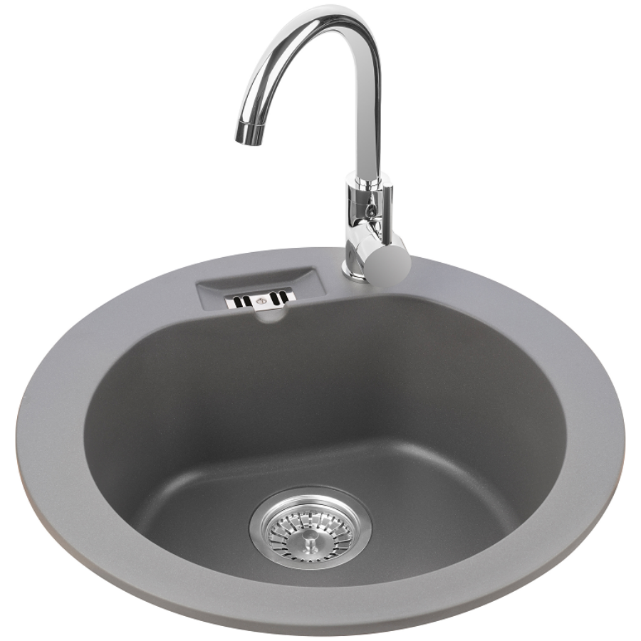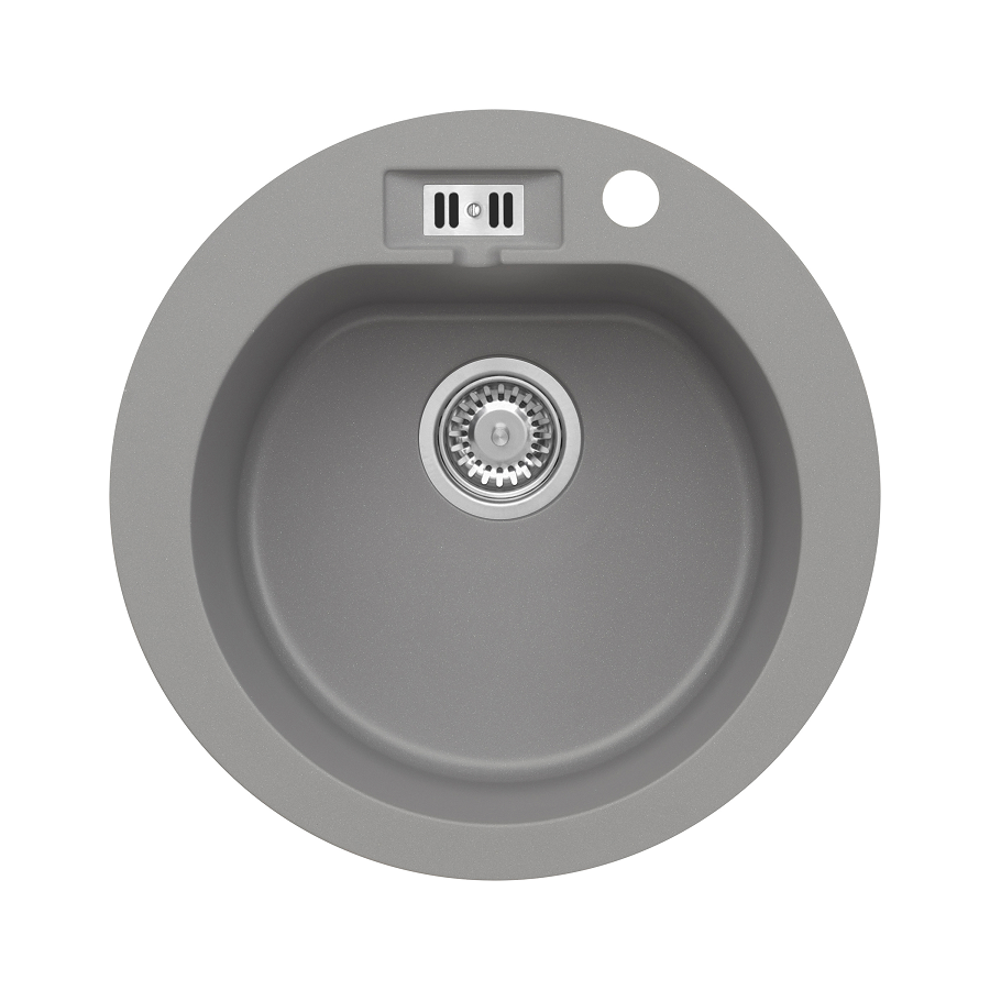 MALIBU 10 egymedencés kör alakú gránit mosogató, csepptálcás kivitelben, extra mély medencével, fekete-szemcsés, fekete, bézs, fehér és szürke színekben. Jobbos és balos kivitelben is használható. A MALIBU 10 egymedencés kör alakú gránit mosogató min. 50 cm széles szekrénybe építhető be.