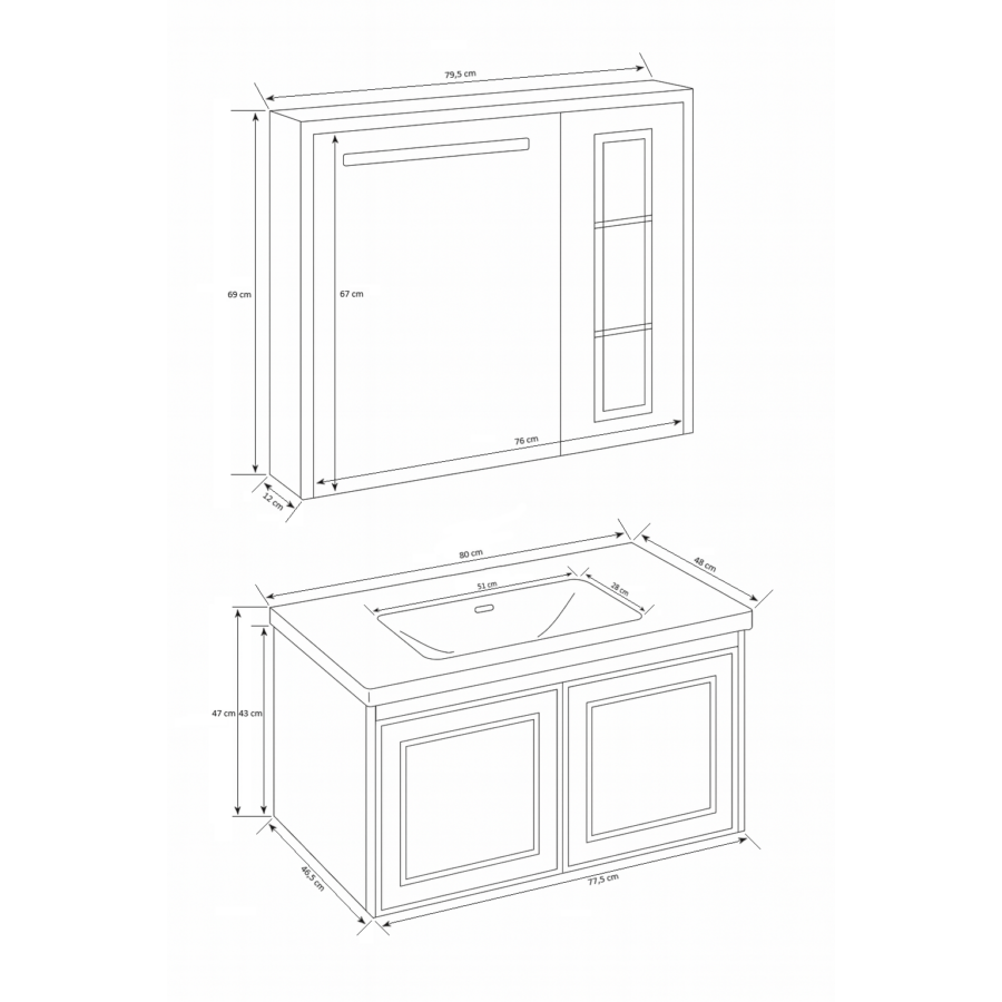 Alsó szekrény + mosdó műszaki adatai: