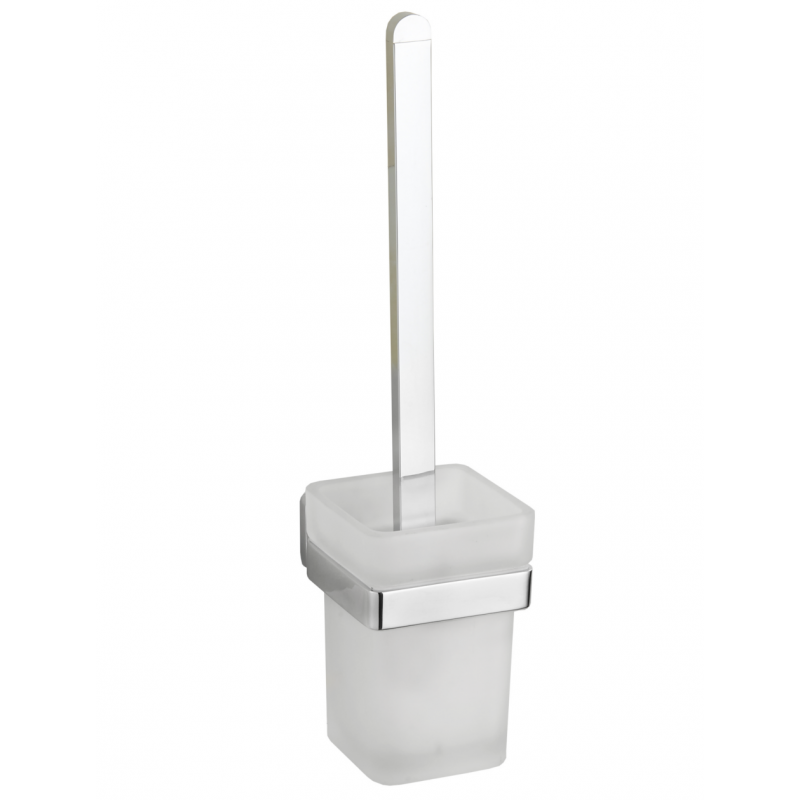 Falra szerelhető wc kefe tartó króm színben, matt üveg tartóval. Mexen Asis fali wc kefe tartó króm