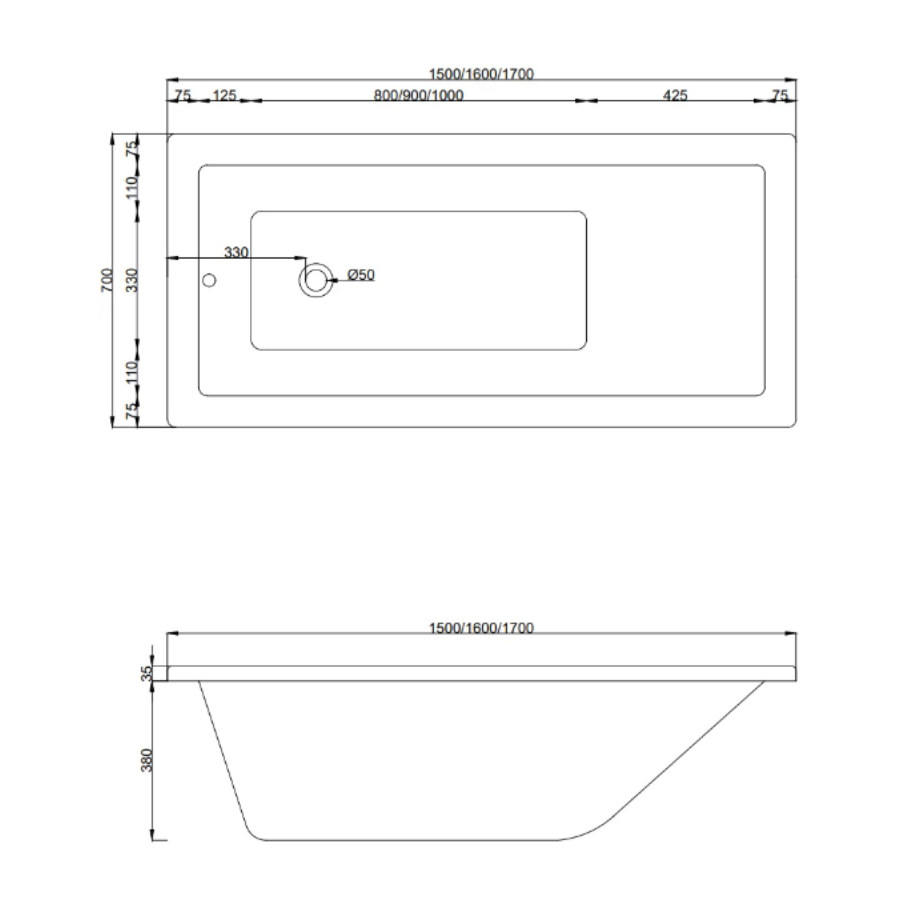 Mexen Cubic akril kád 170*70 cm, fehér, beépíthető