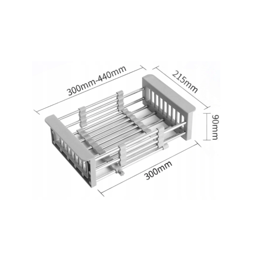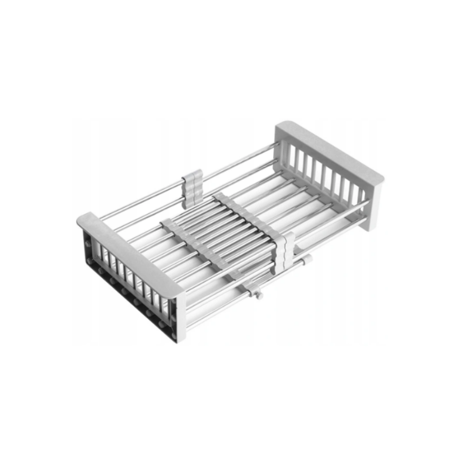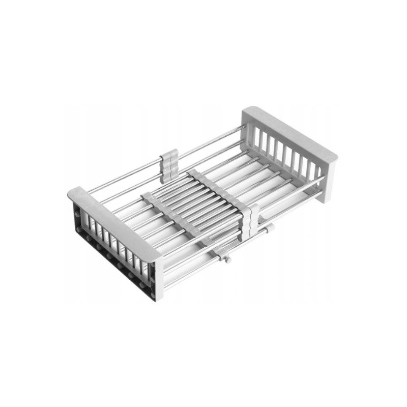 Mexen gyümölcsszárító állítható szélességgel 30 - 44 cm között gránit mosogatóra helyezhető. Gyümölcsmosóként és edényszárítóként is tökéletesen használható, anyaga rozsdamentes acél csúszásmentes PVC végekkel. Ideális 1,5 medencés mosogatókhoz. Mexen gyümölcsmosó, szárító, állítható, szürke