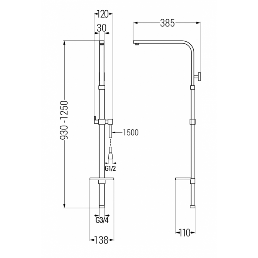 Zen1 zuhanyszett Slim esőztető szögletes zuhanyfejjel króm, beépíthető