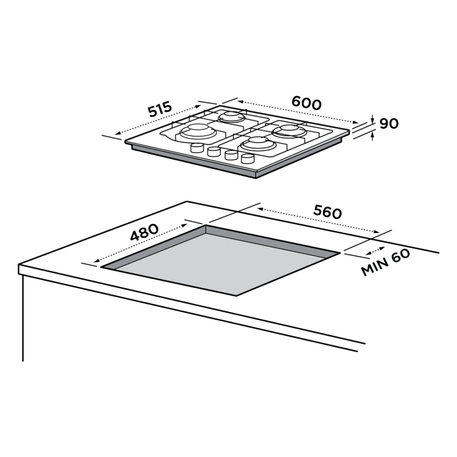 MIDEA beépíthető gáz főzőlap 60 cm, feketeParaméterek