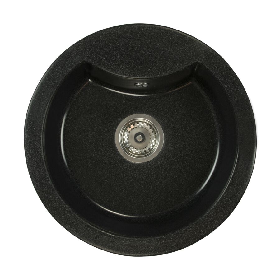 Egymedencés kör alakú gránit mosogató, amely ideális kis konyhákba, fekete, bézs, szürke, fehér, fekete-szemcsés színekben.