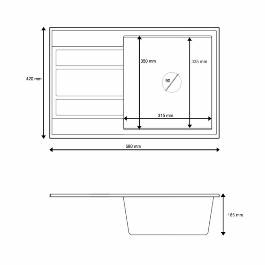 Modern 6040 csepegtetőtálcás egymedencés gránit mosogató, manuális szifonnal, fehér, beépíthető