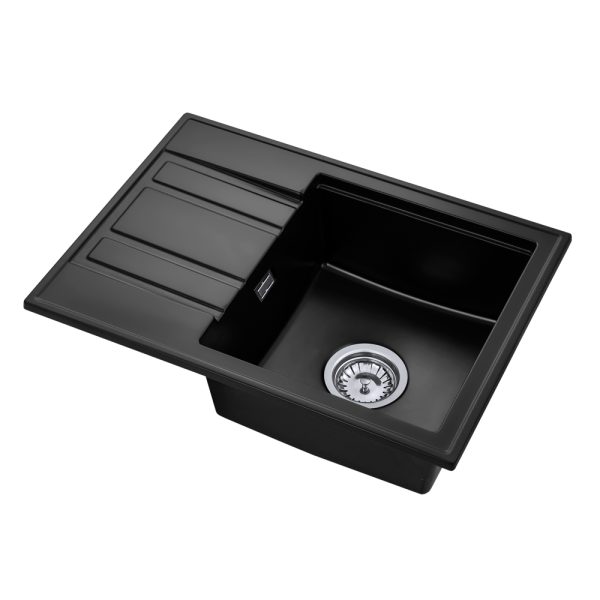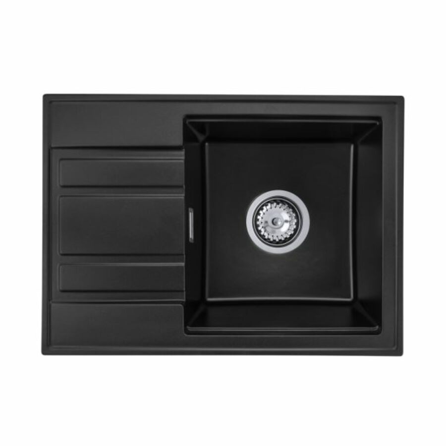 Modern 6040 csepegtetőtálcás egymedencés gránit mosogató, manuális szifonnal, fekete beépíthetőParaméterek
