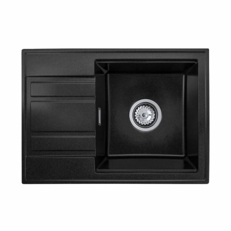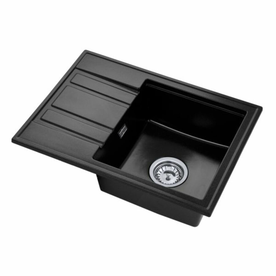 Modern 6040 csepegtetőtálcás egymedencés gránit mosogató, manuális szifonnal, fekete-szemcsés beépíthető