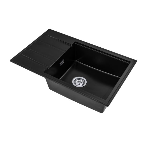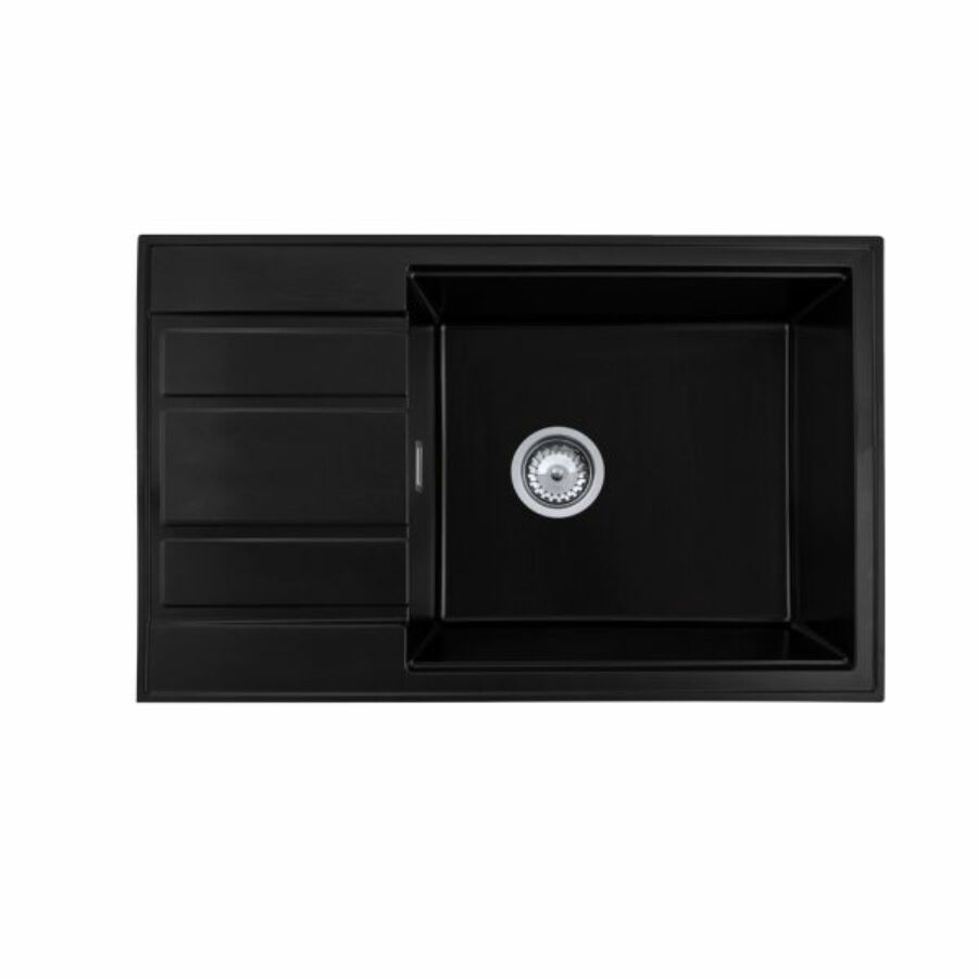 Modern 8010 csepegtetőtálcás egymedencés gránit mosogató, manuális szifonnal, fekete, beépíthetőParaméterek