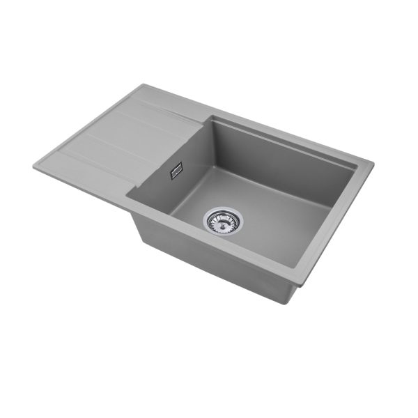 Modern 8010 csepegtetőtálcás egymedencés gránit mosogató, manuális szifonnal, szürke, beépíthetőParaméterek