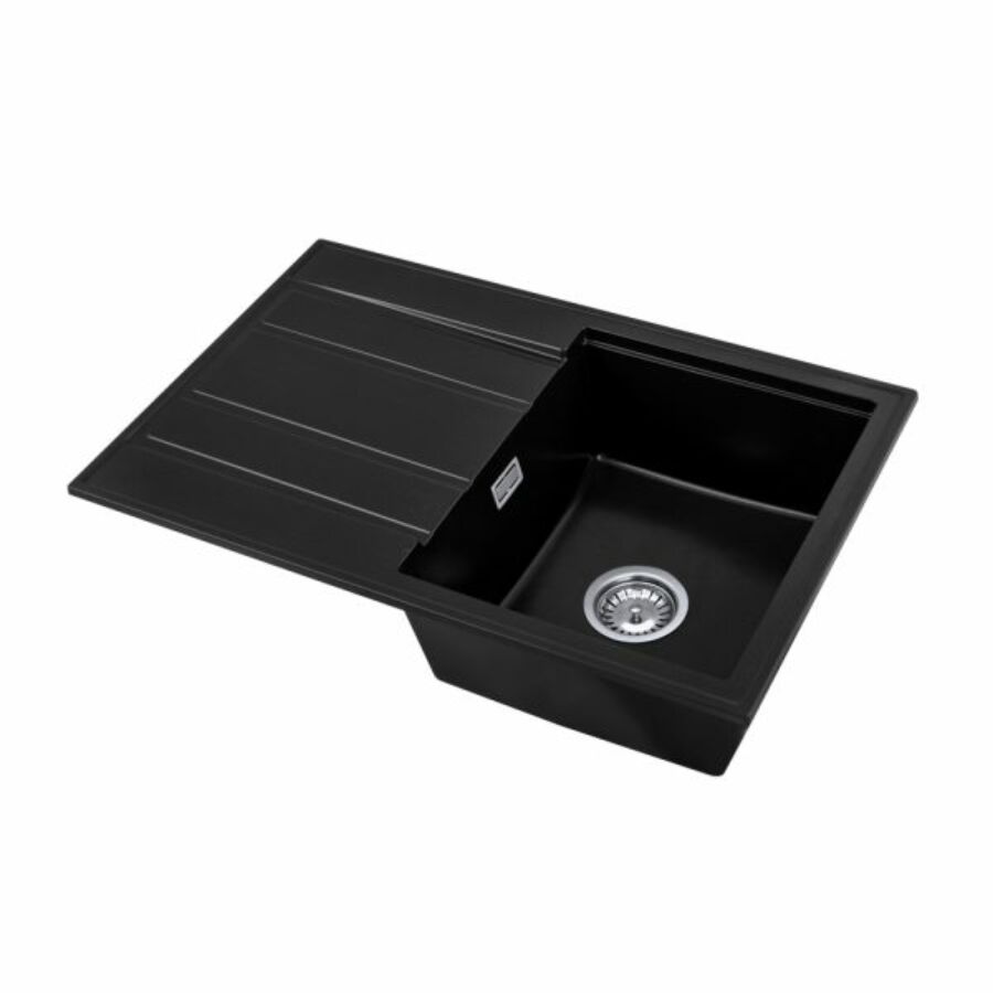 Modern 8050 csepegtetőtálcás egymedencés gránit mosogató, manuális szifonnal, fekete, beépíthetőParaméterek