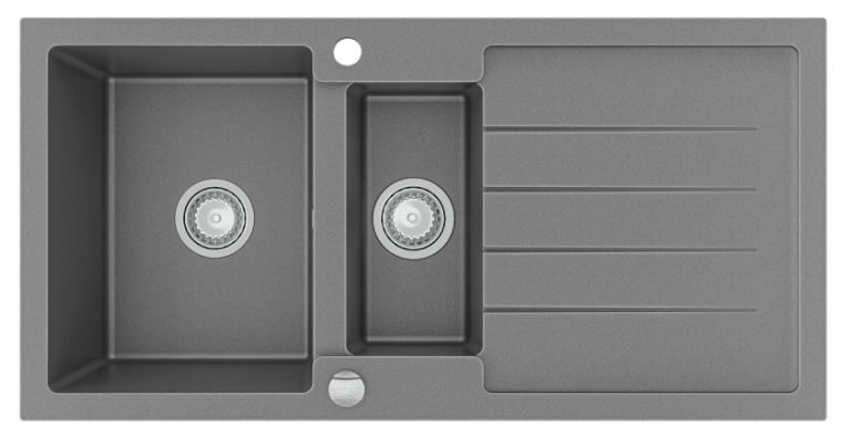 NEXT2 másfél medencés gránit mosogató automata dugóemelő, szifonnal, szürke, beépíthetőParaméterek