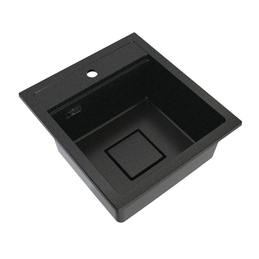 QUADRO 4550 gránit mosogató automata dugóemelő, szifonnal, fekete-aranyszemcsés, beépíthetőParaméterek