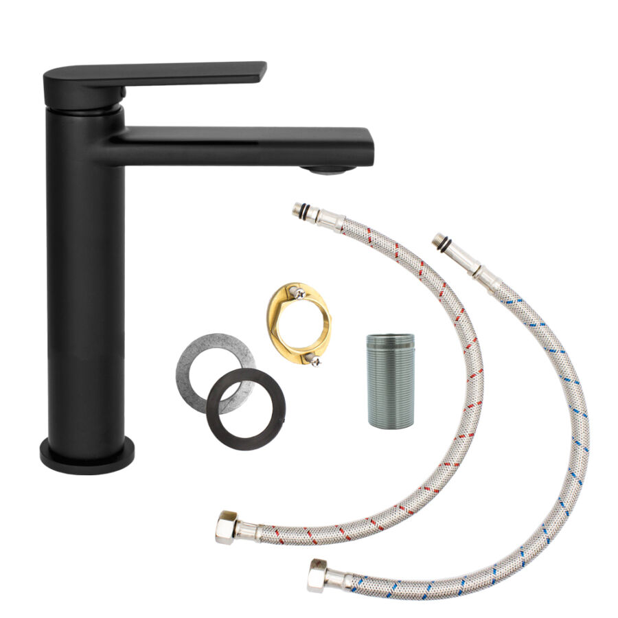 A csomag tartalma: csaptelep, bekötő csövek, tömítések, minden szerelvény, ami a bekötéshez szükséges
