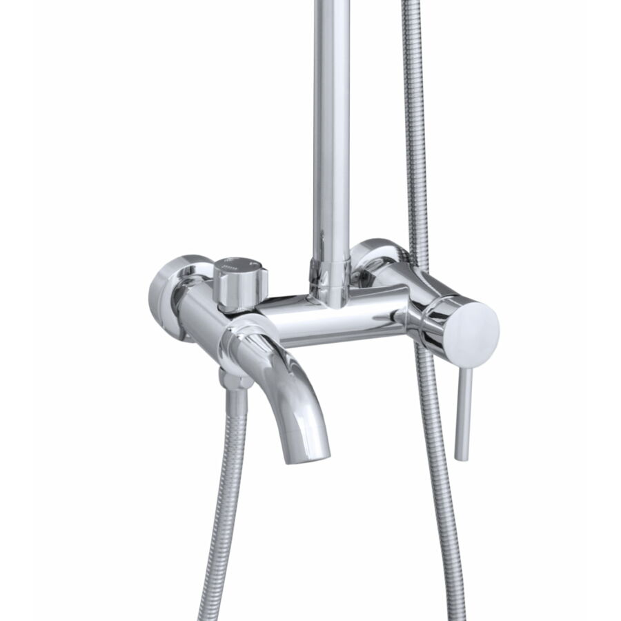 A csomag tartalma: esőztető zuhanyfej, kézi zuhanyfej, fali rögzítő elem, tömítések, zuhany- és elemcsatlakozó tömlő, zuhanykapcsoló, minden szerelvény, ami a bekötéshez szükséges