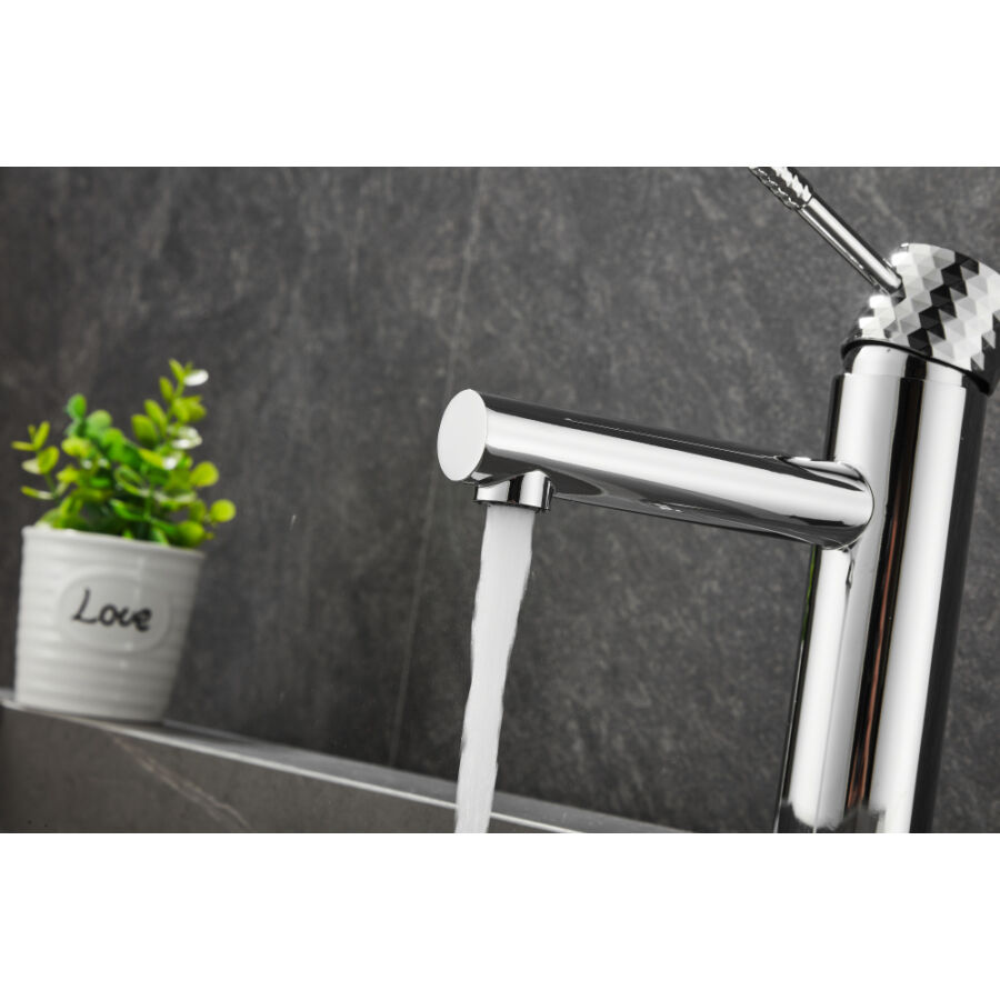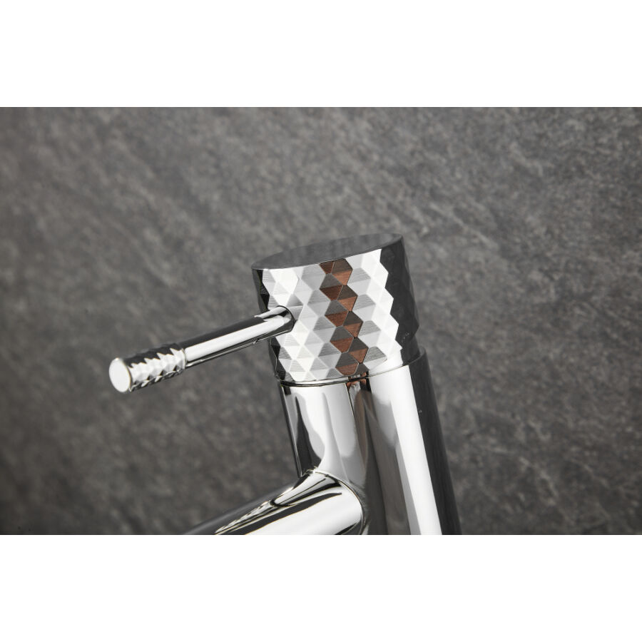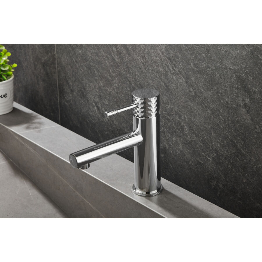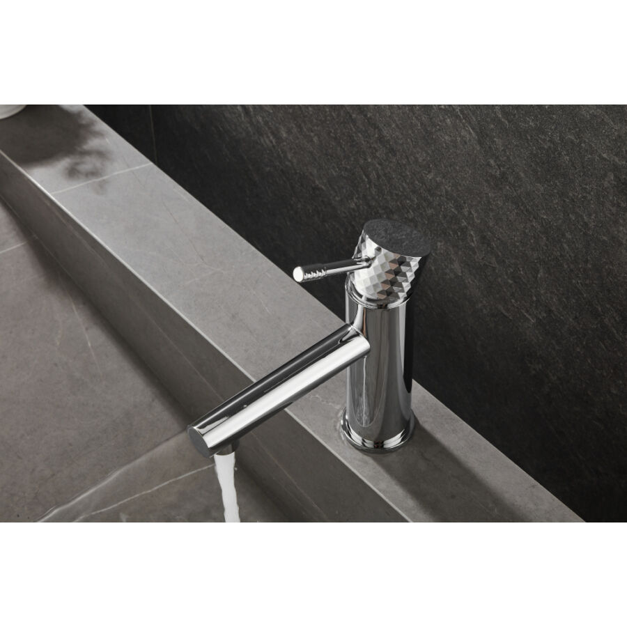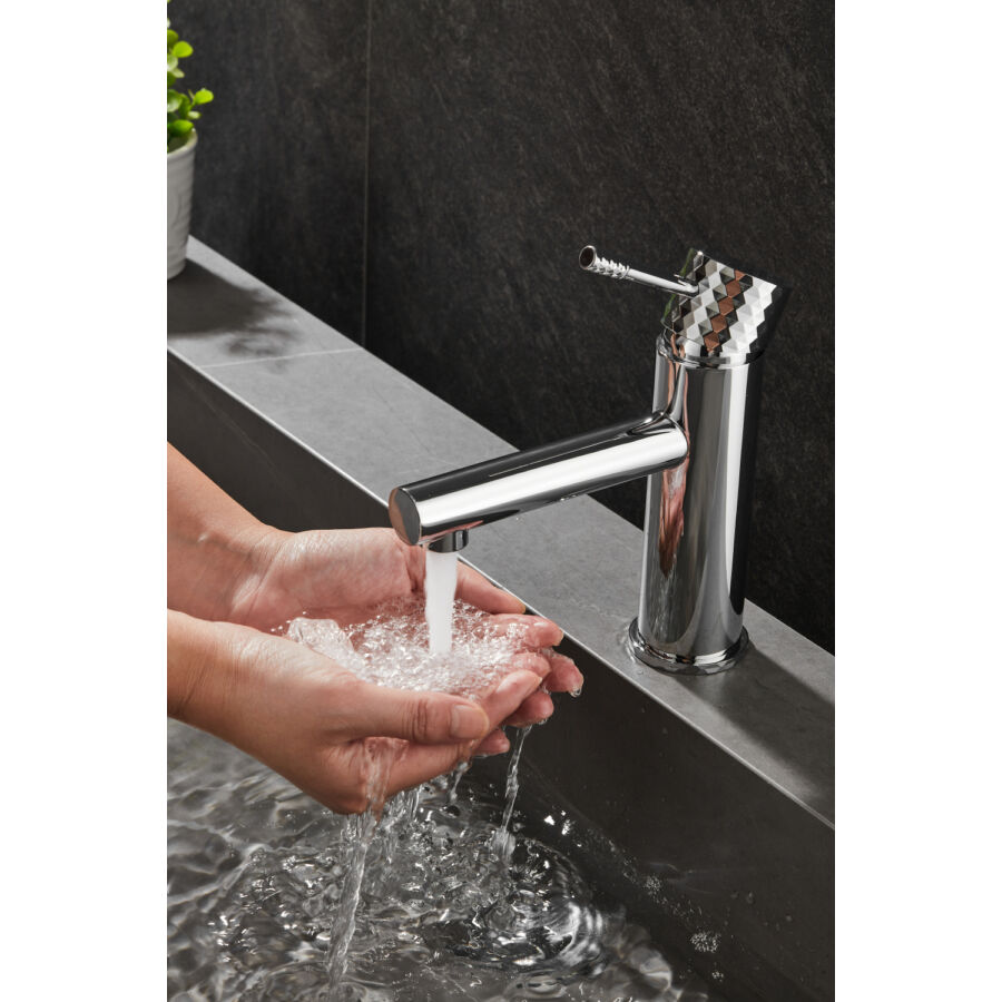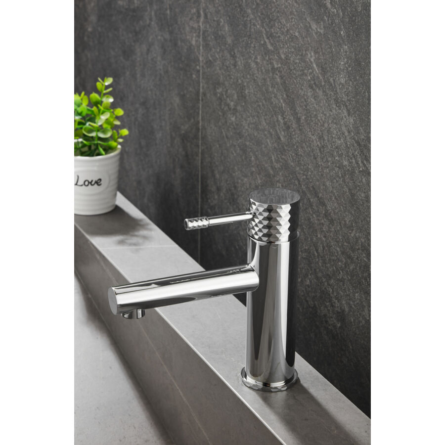 A Roy Pro mosdócsaptelep elegáns króm felülettel ötvözi a stílust, a tartósságot és a funkcionalitást. Kiváló minőségű sárgarézből készült, így korrózióálló és hosszú élettartamú. A modern dizájn, amelyet a gyémántcsiszolt gomb fokoz, egyedi és luxus jelleget kölcsönöz neki.