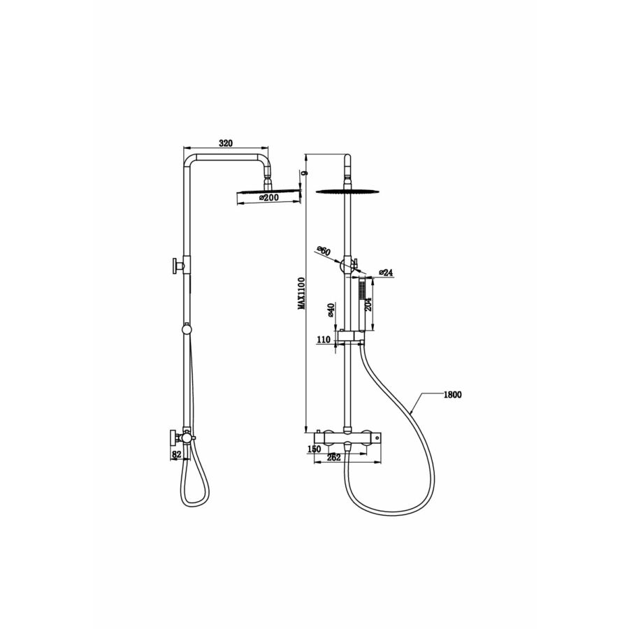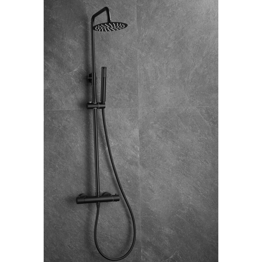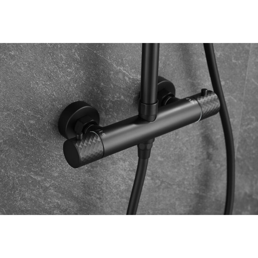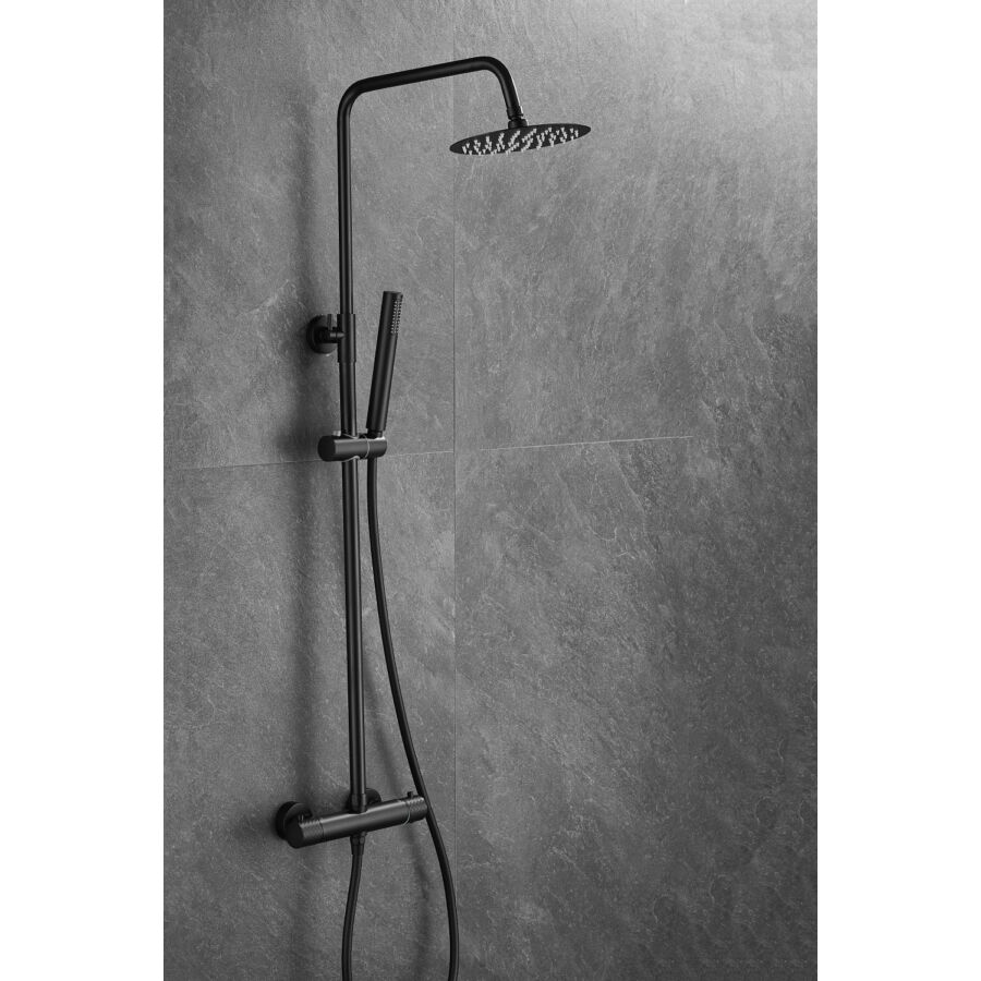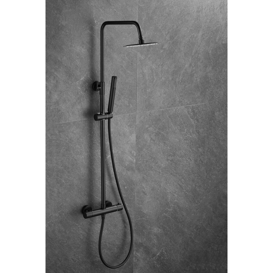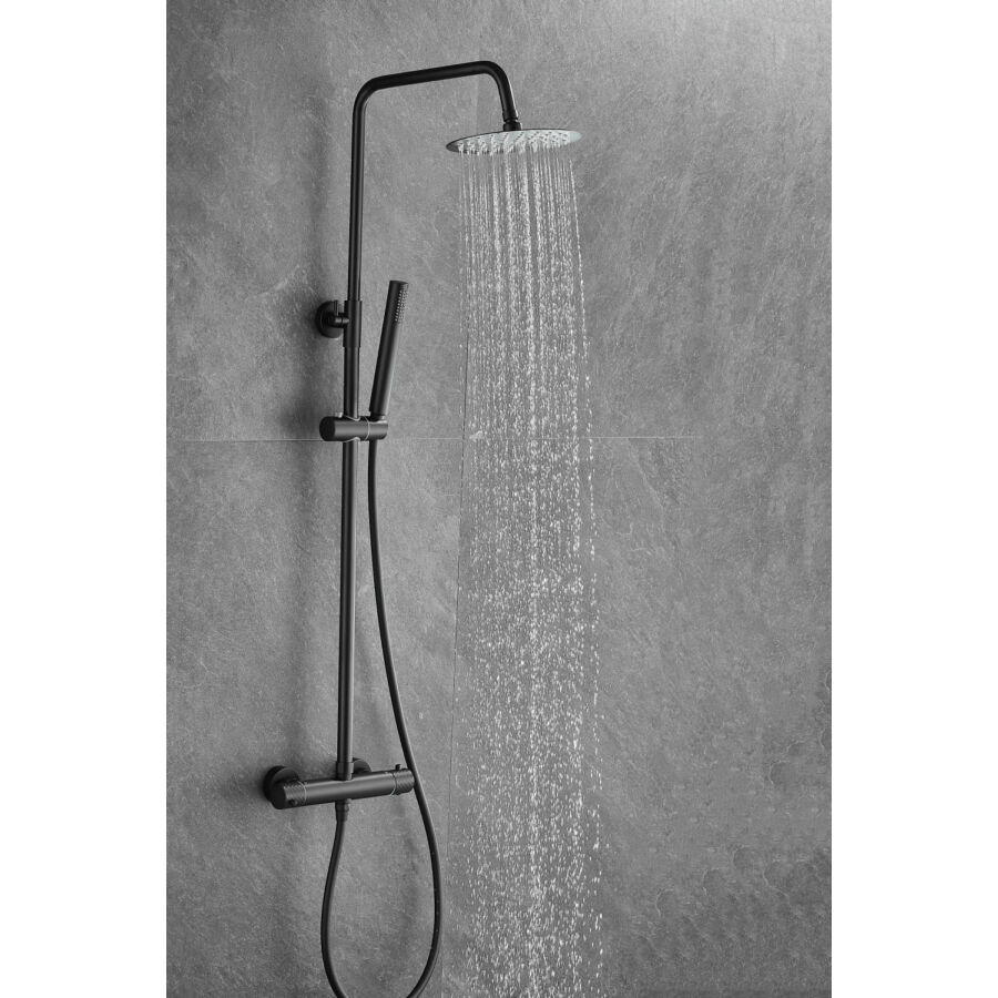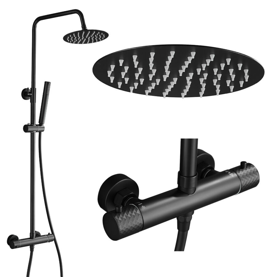 Roy Pro termosztatikus zuhanyszett fali keverőcsappal és esőztető zuhanyfejjel fekete, beépíthetőParaméterek