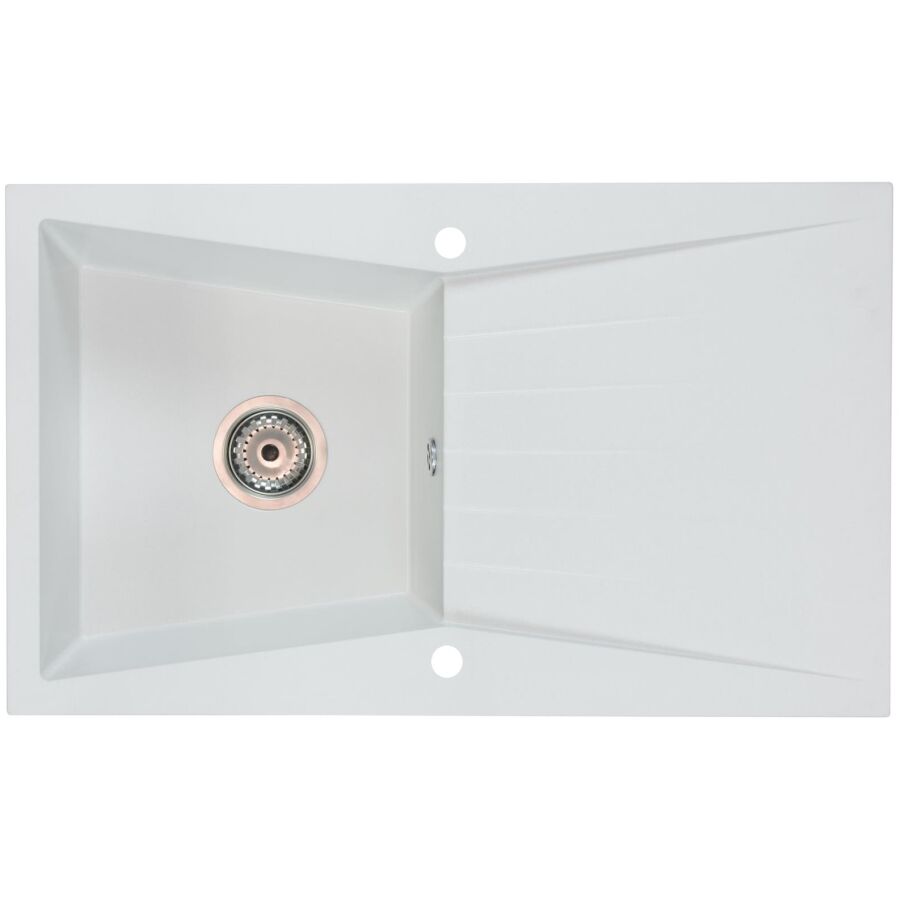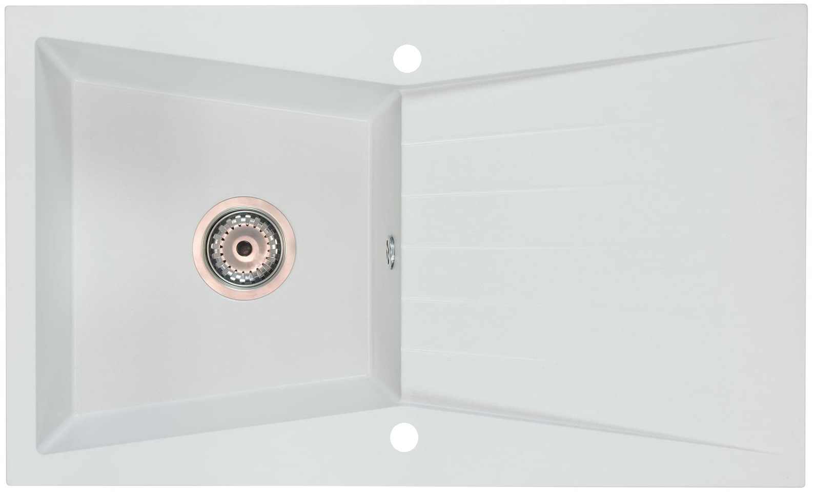 RUBIN egymedencés gránit mosogató csepegtető tálcával, különleges kialakítású medencével, automata szűrőkosaras leeresztővel, szifonnal, fehér