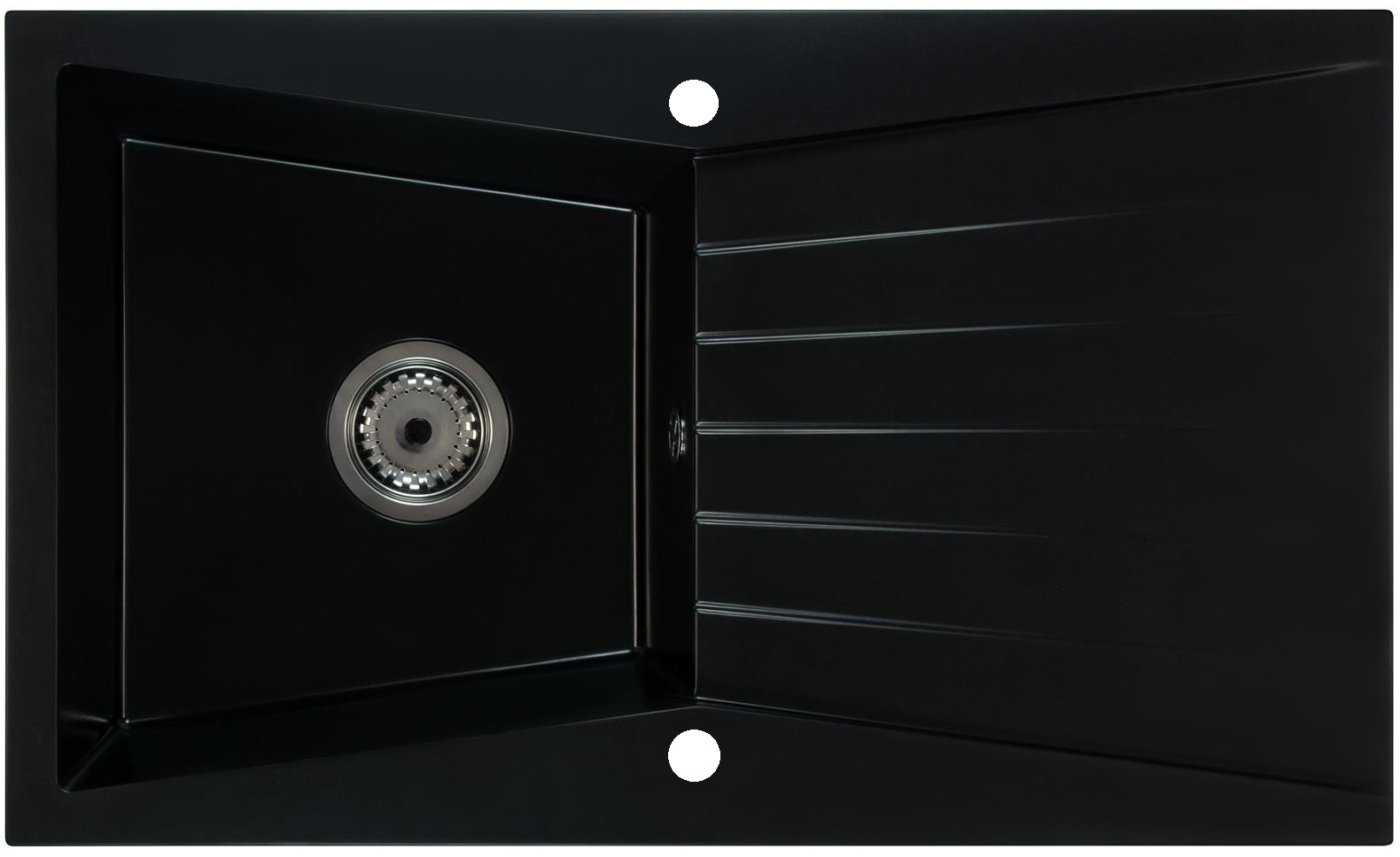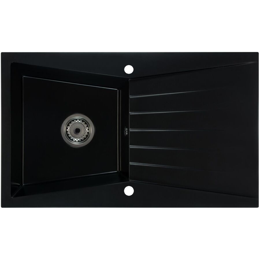 RUBIN egymedencés gránit mosogató csepegtető tálcával, különleges kialakítású medencével, automata szűrőkosaras leeresztővel, szifonnal, fekete