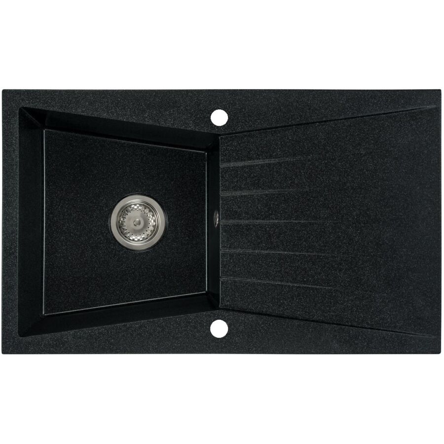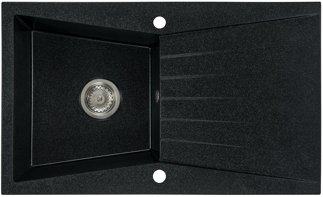 RUBIN egymedencés gránit mosogató csepptálcás kivitelben, különleges kialakítású mély medencével, fekete-szemcsés, fekete, bézs, fehér és szürke színekben. Jobbos és balos kivitelben is használható. A RUBIN egymedencés gránit mosogató csepegtető tálcával min. 45 cm széles szekrénybe építhető be.