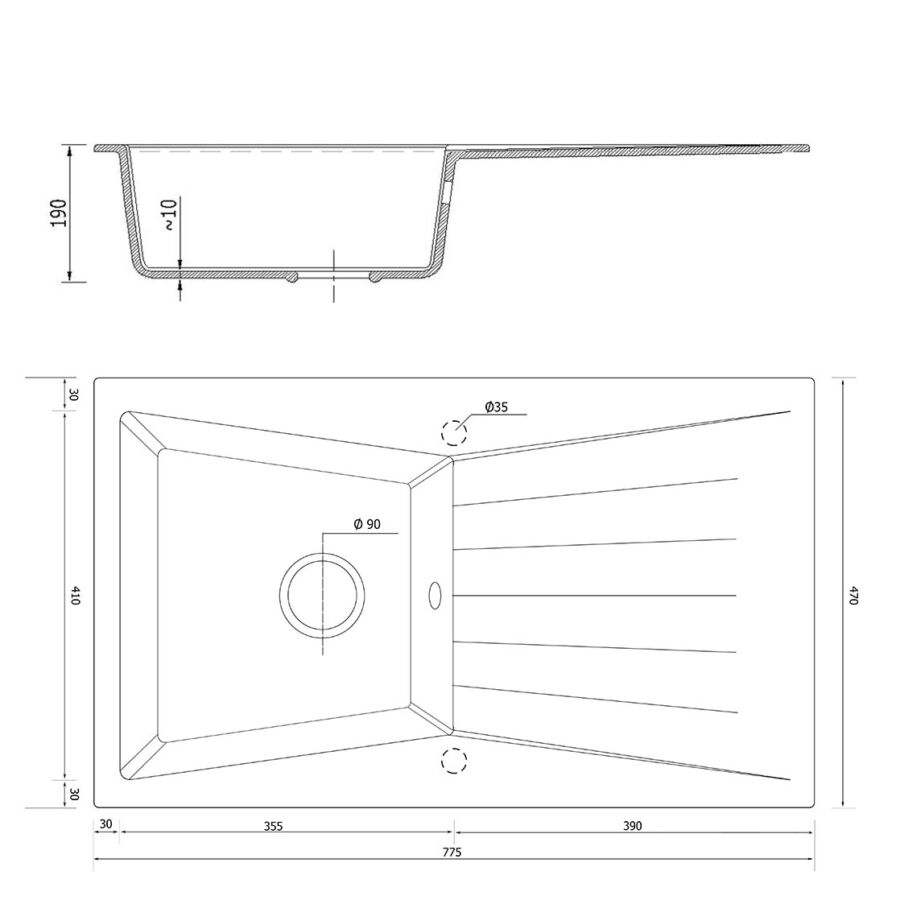 RUBIN egymedencés gránit mosogató csepptálcával alapból két előre kifúrt lyukkal érkezik raktárunkba, egy a csaptelepnek a másik az automata dugóemelőnek, igény szerint kérhető extra lyuk a folyadékadagoló számára. A RUBIN egymedencés csepptálcás gránit mosogató tisztítása nagyon egyszerű, felülete könnyen tisztán tartható, ehhez elegendő egy szivacs, és bármilyen a háztartásban megtalálható tisztítószerrel nedvesen letisztítani, (nem maró hatásúval!) majd papírtörlővel szárazra törölni.
