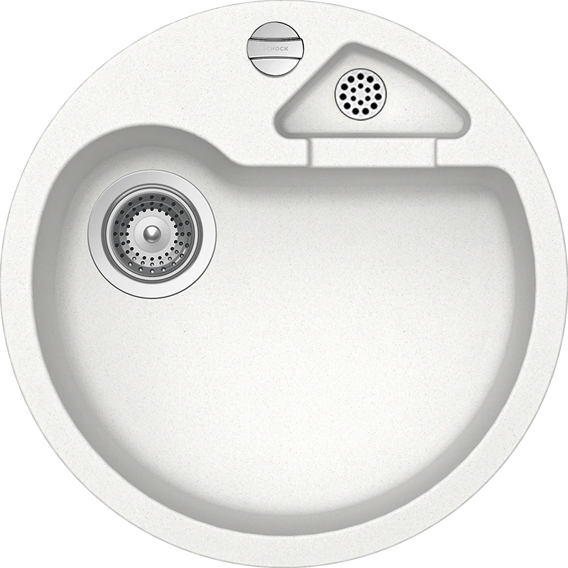 SCHOCK Classic R-100 Cristalite Alpina egymedencés kerek gránit mosogató, szifonnal, fehér, beépíthetőParaméterek