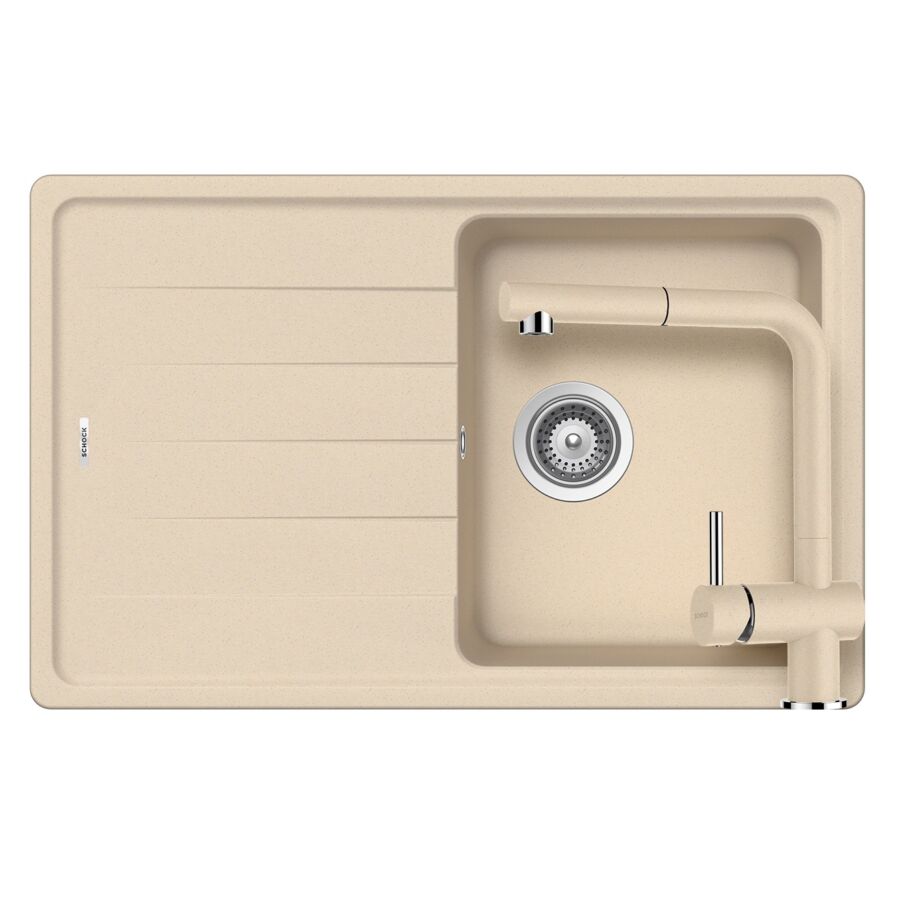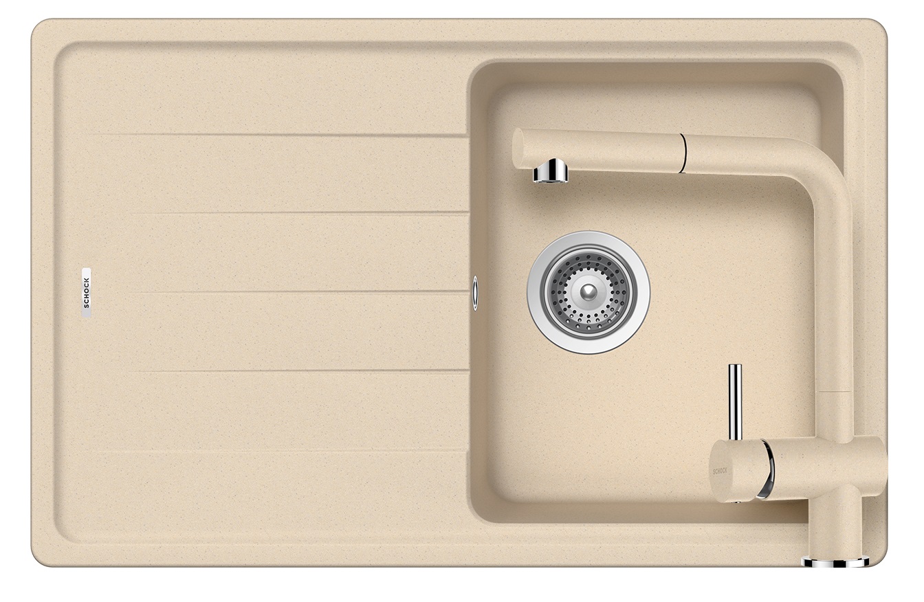 SCHOCK Element D-100S Cristalite Moonstone gránit mosogató szett, Schock Epos Ext konyhai csaptelep kihúzható, bézs, beépíthetőParaméterek