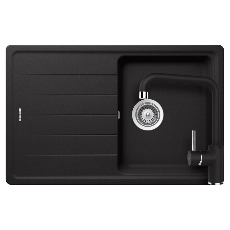 SCHOCK Element D-100S Cristalite Nero gránit mosogató szett, Schock Fonos konyhai csaptelep, fekete, beépíthetőParaméterek